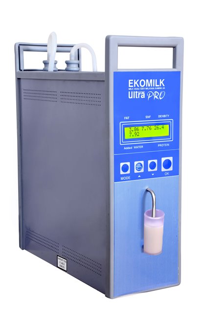 The ultrasonic milk analyzers can be applied for measurement of fat (FAT), solids non-fat (SNF), proteins, lactose, water content percentages, temperature (°C), pH, solids, conductivity (G) as well as density of one and the same sample directly after milking, at collecting and during processing. These devices are suitable for laboratories, but also for milk collection centres, farms, small dairy farms and milk truck. Milk analyser price is affordable